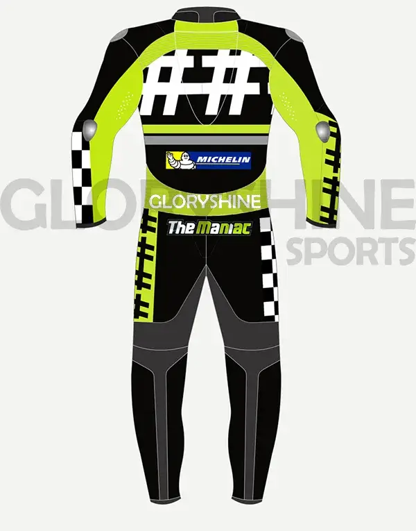 - Denna läderdräkt har en aerodynamisk avtagbar puckel.