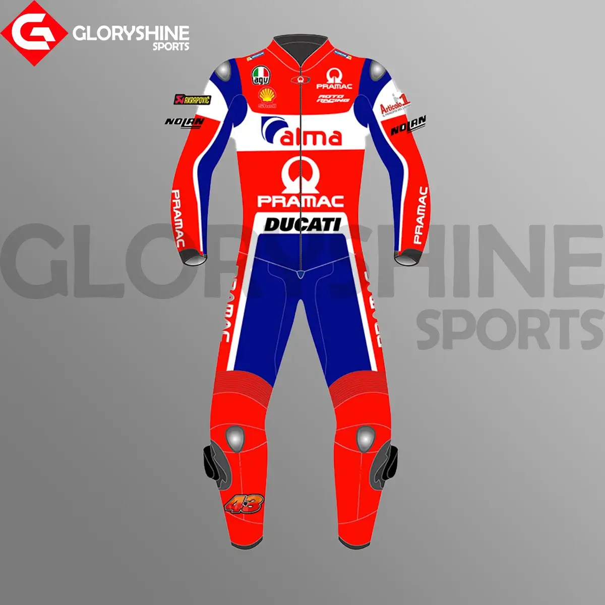 Denna läder kostym användes i Lenovo MotoGP 2022. Den är tillverkad av kohudsläder med en tjocklek på 1,2–1,3 mm och Schoeller Kevlar-tyg för att ge fullständig säkerhet och komfort för föraren. Certifierade externa skydd med kolfiberinsatser och PU-inre skydd används i Danilo Petrucci Läderdräkt Ducati Pramac MotoGP 2018 för att ge full säkerhet för känsliga delar av kroppen (axel, armbåge, ryggrad och knä). Inuti dräkten finns ett makromeshfoder för komfort och alla interna skydd är lätt avtagbara, inklusive den aerodynamiska puckeln.