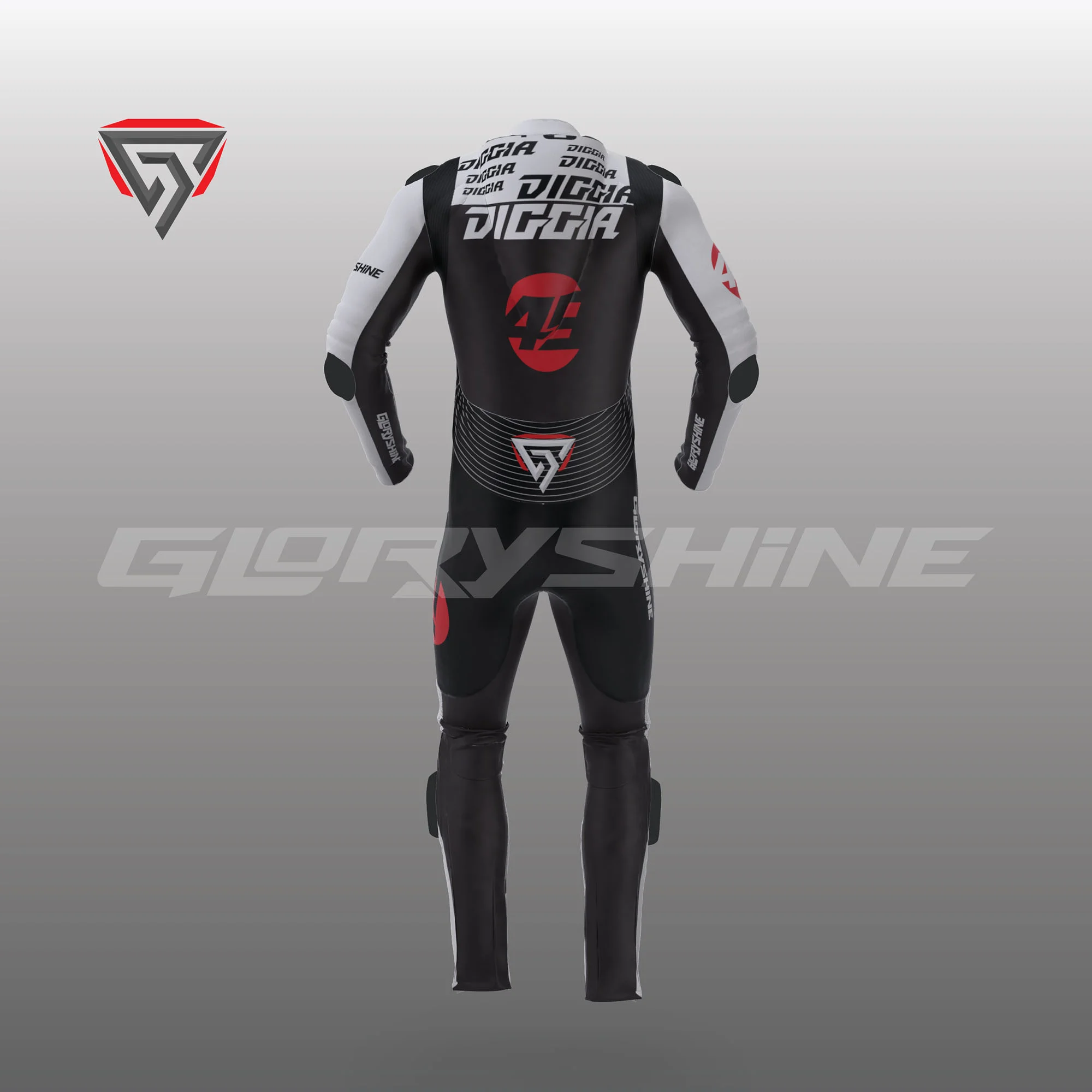 - Denna läderdräkt har en aerodynamisk avtagbar puckel.